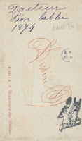 Cette photographie, prise en 1874, représente Léon Labbé (1832-1916). Ce chirurgien qui a aussi fait une carrière politique, était un ami de Nicolas Larbaud (1822-1889). Il a opéré et sauvé Valery Larbaud d’une hernie menaçant de dégénérer en péritonite, quand il avait 6 ans. On comprend que cette photographie ait été précieusement conservée.