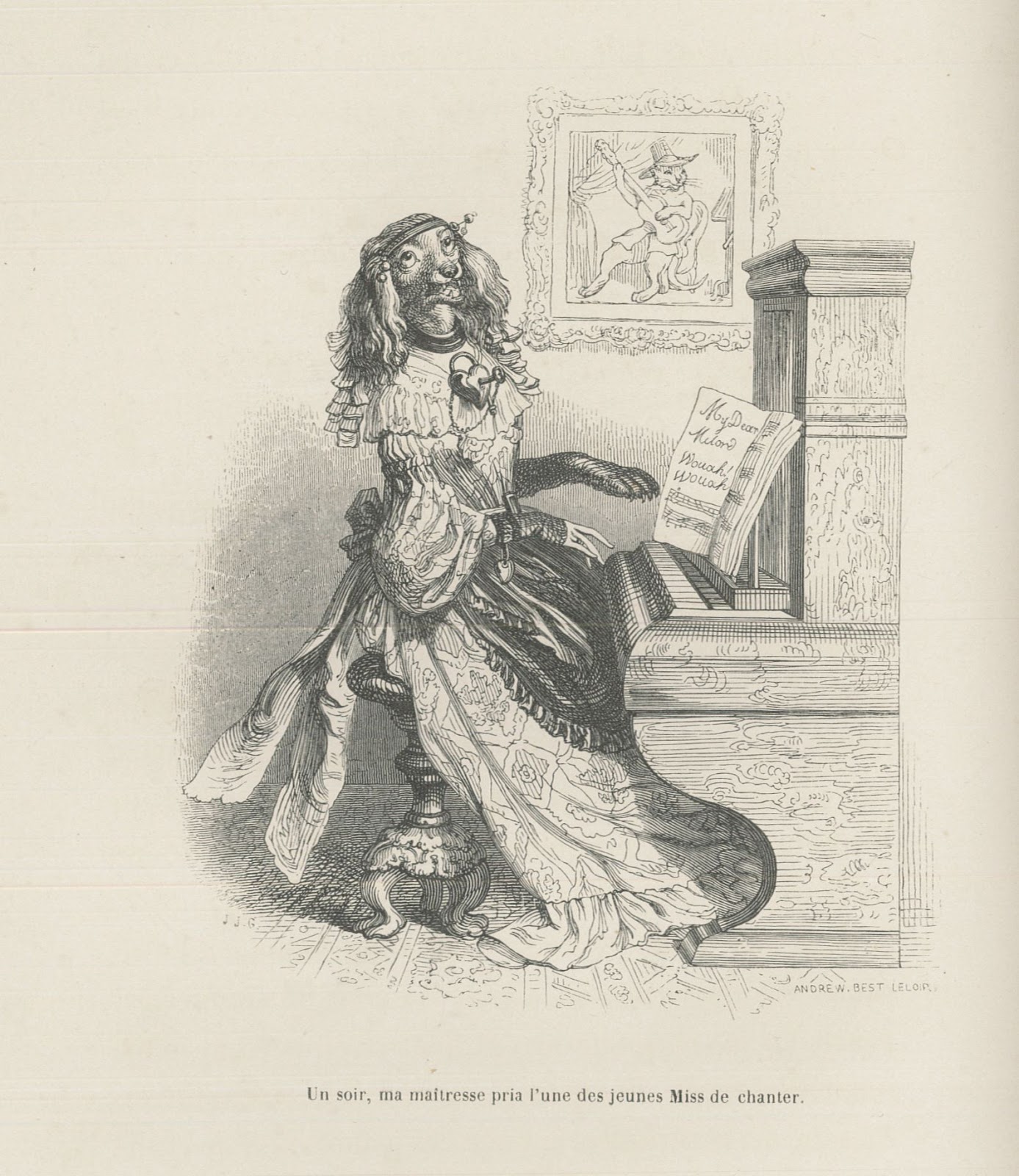S’inspirant de l’ouvrage « Les Français peints par eux-mêmes », Grandville caricature le principe du panorama social en substituant aux portraits d’humains des représentations d’animaux. Grâce à la précision et au réalisme de ses traits, il établit ainsi parallèle entre l’homme et le règne animal.